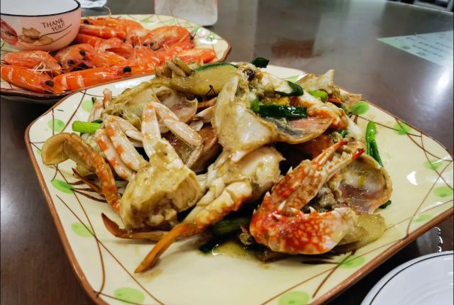 碧桂园十里银滩美食推荐。🦀️姜葱炒花蟹太绝了!蟹肉鲜甜饱满,葱姜香完全渗入,一口下去超满足!🍚虾仁海胆炒饭必点,金黄海胆裹着Q弹虾仁,米饭粒粒分明,鲜香不腻~ 🦑鼓油皇鱿鱼火候刚好,爽脆入味,酱香浓郁超下饭! 每道菜都好吃到舔盘,绝对会N刷!💯强烈推荐!