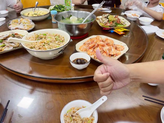 家人们,挖到宝啦!周末在井珠阁海鲜饭店体验了一场超绝的海鲜盛宴,必须给大伙唠唠。 先夸夸虾仁海胆炒饭,一端上桌,那香味瞬间“拿捏”我的鼻子。每一粒米饭都裹满海胆的鲜和虾仁的甜,海胆量超足,鲜得眉毛都要掉下来了,虾仁又大又Q弹 ,吃起来超有嚼劲,一勺接一勺,根本停不下来。 鱿鱼处理得恰到好处,表面的花刀十分漂亮,吃起来爽脆弹牙,酱料入味,咸香微辣,越嚼越上瘾。赖尿虾个头惊人,虾肉饱满紧实,轻轻一剥,完整的虾肉就出来了,清蒸的做法最大程度保留了它的鲜美,原汁原味,鲜到犯规。 服务也是没得说!从进门的那一刻起,店员就热情相迎,不仅迅速安排座位,还贴心递上菜单和热毛巾。用餐时,店员时刻留意着我们的需求,添水、换骨碟都超及时,态度亲切又周到,让人感觉特别舒服。 这次用餐,无论是菜品还是服务,都无可挑剔。[店铺名称]绝对值得N刷!