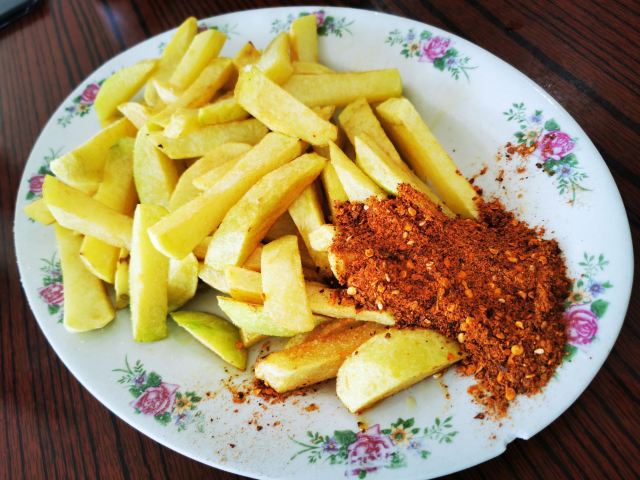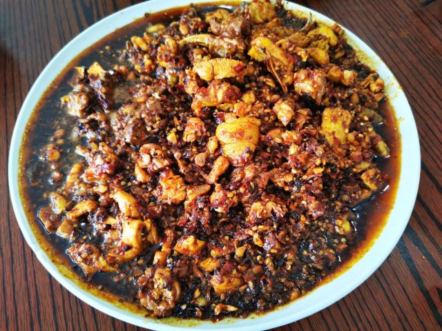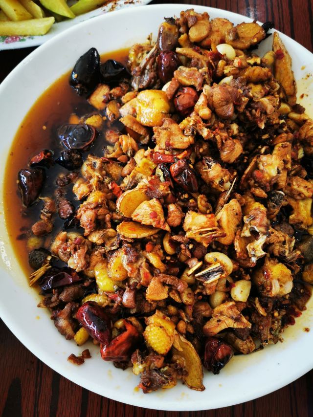 专门去吃过两次,一盘辣子鸡,一盘黄焖鸡,再来一盘特色的炸洋芋,简直美味!口味偏重,不敢吃辣的就吃黄焖的,味道同样不错!地点很好找,跟着导航,就在路边上。