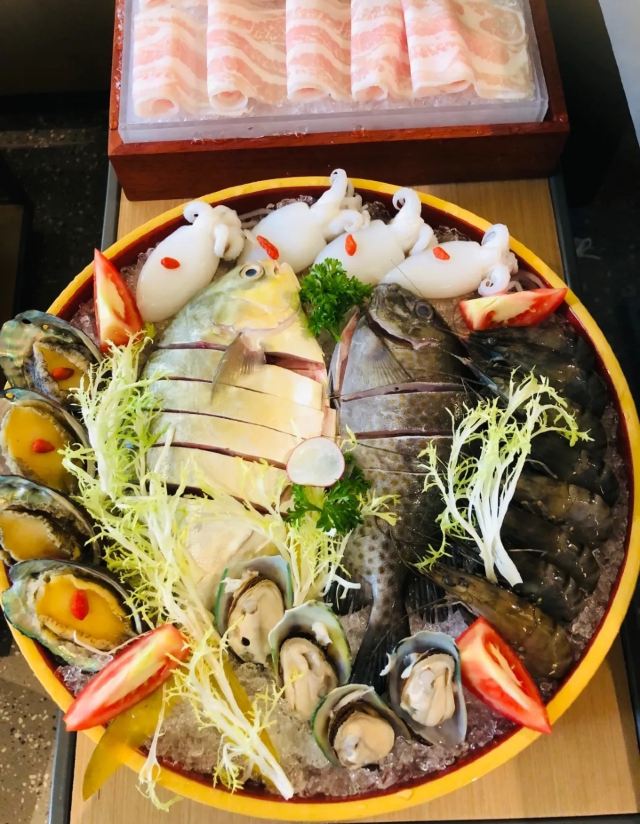 琼州糟粕醋锅,海鲜拼盘(大),鲍鱼,带子,海南粉,椰子饭,黑蒜烤生蚝,嫩豆腐,鱼饼,手打虾滑,手打墨鱼滑,香菇墨鱼滑,定安黑猪粽,原切雪花肥牛,黑猪梅花,鸳鸯锅,菌类拼盘,贡菜,鲜黄喉,小八爪鱼,蛋饺,草虾,三点蟹,鱼籽福袋,猪肚丸,柴火豆腐,泥猛鱼,贡菜猪肉丸,小象拔蚌,菜包饭,摇摇酥肉,芥末生蚝,雪蟹柳,蛏子皇,鸡肉,鲜毛肚,蔬菜拼盘,墨鱼丸,牛肉丸,炸鸡翅,香炸仙沟牛排,大颗粒虾滑,温泉鲜鹅肠,蜀海竹笙,博鳌冲浪鱼,五指山小黄牛牛腩,小金昌鱼,三秒鲜脆海草,手打黑猪肉丸,小金鲳鱼,香炸仙沟牛肉,芒果螺/沙包螺