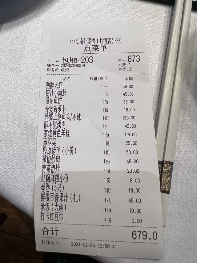 白胡椒大虾,招牌外婆酱鸭,蒸双臭,酥不腻烤肉,小葱南湖菱,芦竹笋南湖菱,小黄鱼烧年糕,招牌黄金豆腐,外婆土烧鱼头,糖醋小排,铁板芋艿,外婆脆皮年糕,大拌菜,养生果蔬色拉,蚝油生菜,上汤螺蛳,外婆小米糕