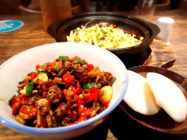 入住酒店后搜索附近美食发现了这家当地美食排行榜第一的餐厅-舅母子当家,是一家土家菜馆,有点南京大排档的感觉,味道还不错,幸亏去的早,否则等位很久,我们吃完的时候、外面已经排了很多食客。服务员也很不错,耐心有眼力见儿