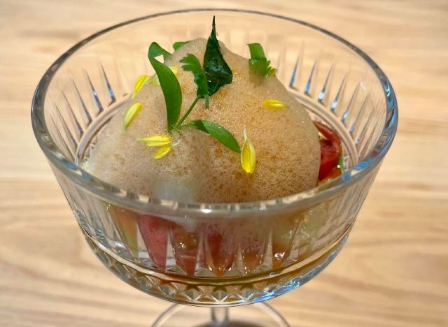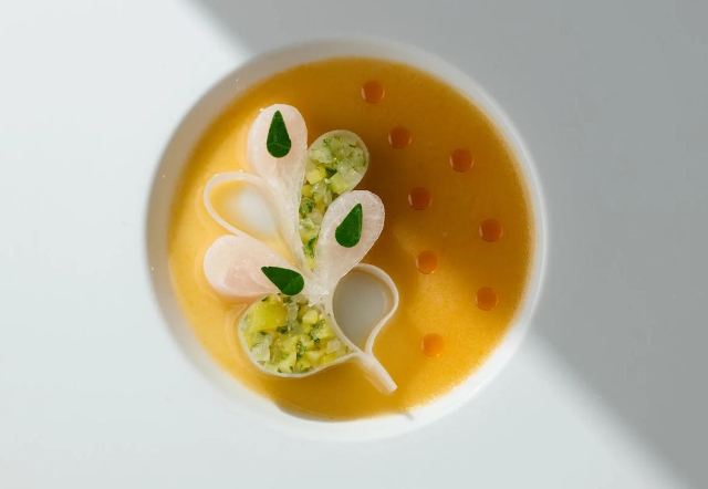 法式清汤,巨峰葡萄,老面,北海道肋眼,柴烧安格斯牛小排,牛骨髓,椰浆饭,黑河粉,竹筒香料饭