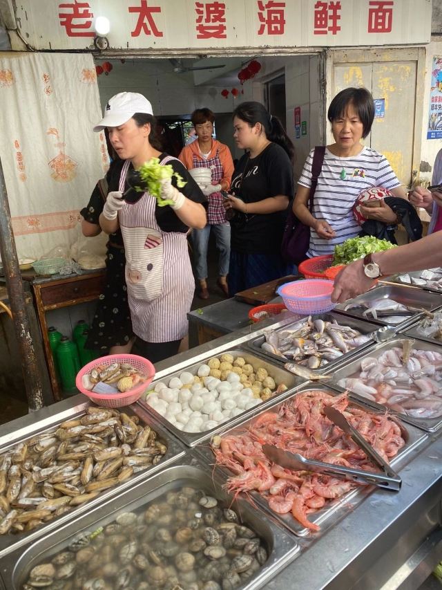 旅游度假老太婆海鲜面