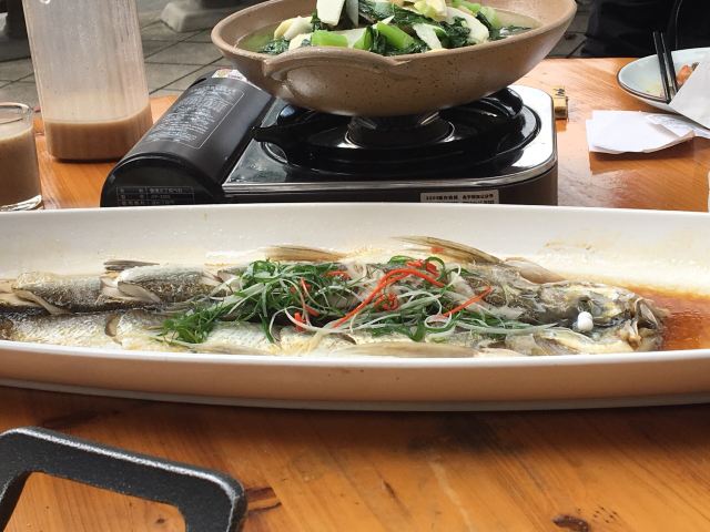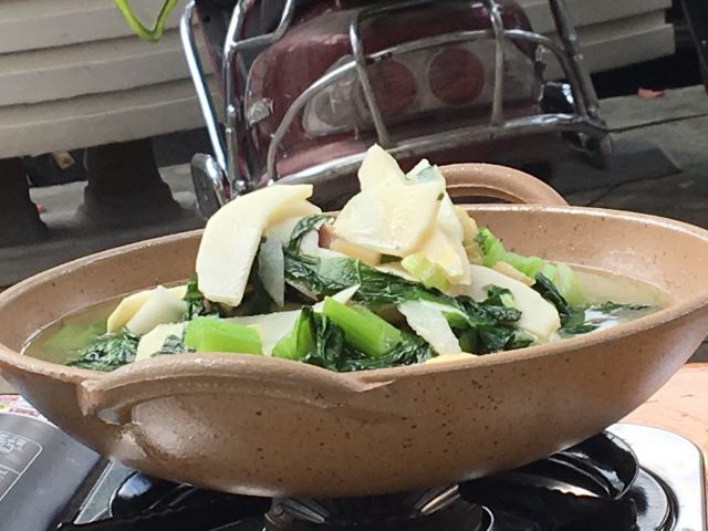 这家店离住宿的酒店比较近在1公里步行圈内,看着点评去的,点评可信不能尽信。 当天实际气温远高于预报,我们又游了两个景点,年前猫冬以来畅快淋漓了一身大汗,晚上的一餐实实在在补充了盐分,送灌了半壶当地特色的多植物茶。 店中主打遂昌菜,口味当地化,有当地特色的手打麻糍。
