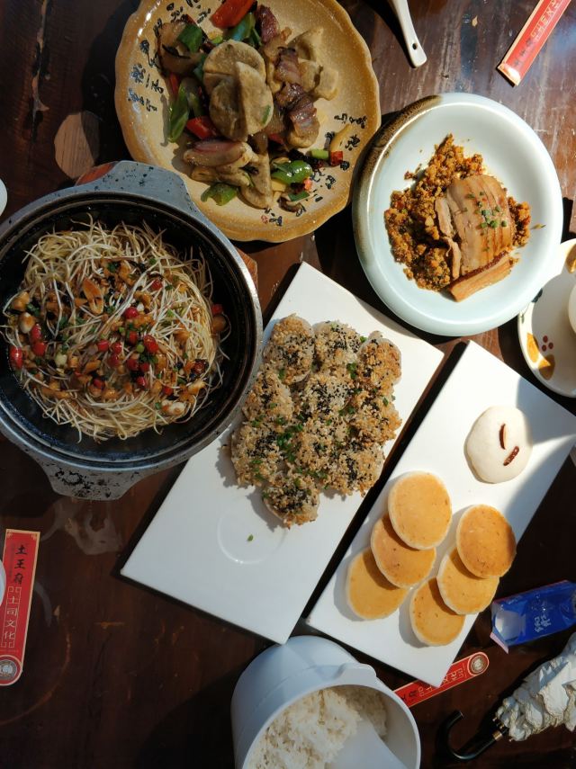柴火洋芋饭,土家扣肉,干锅合渣,小炒肉,全牛宴,葛仙米蒸鸡蛋,根巴凉粉,富硒炕土豆,清炒时蔬,干锅双菌,柏杨豆干,香煎藕饼,红糖麻糍,腊猪蹄炖鸡,渣广椒烧圆尾,来凤鸭