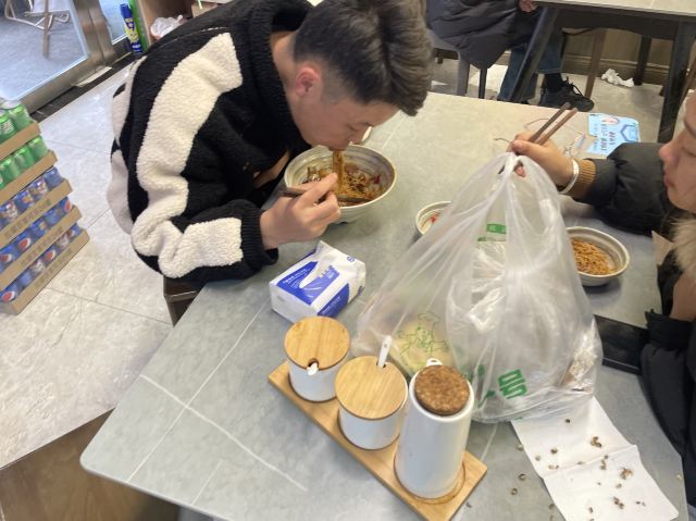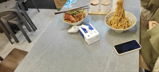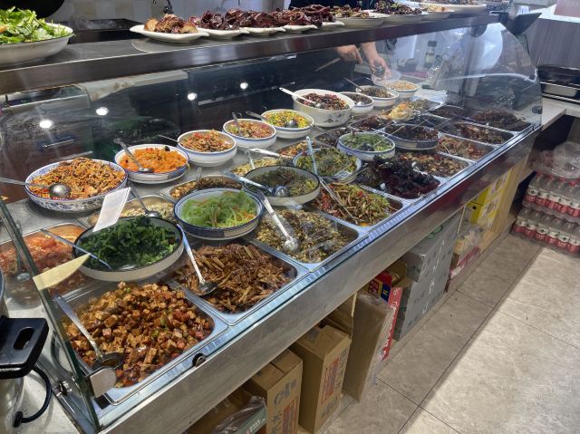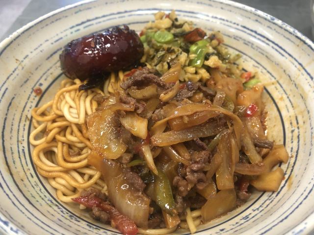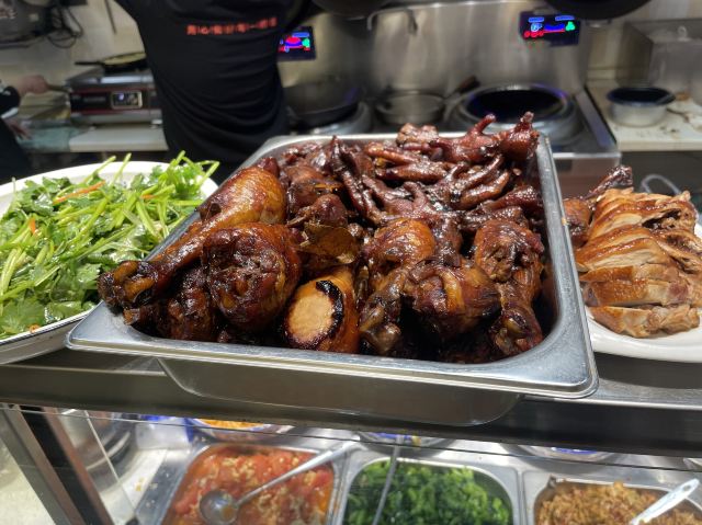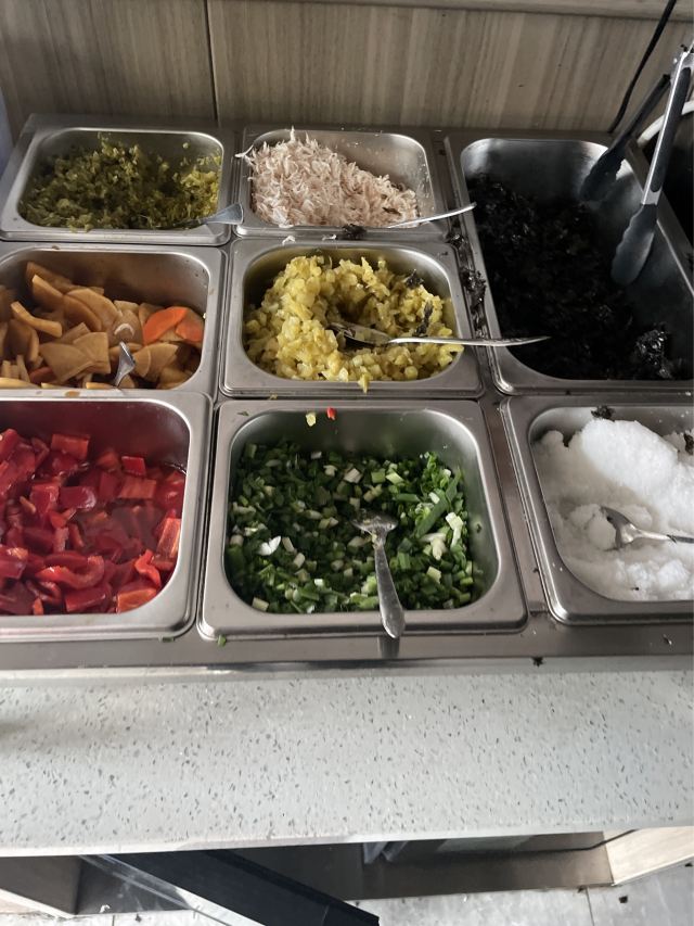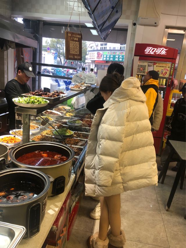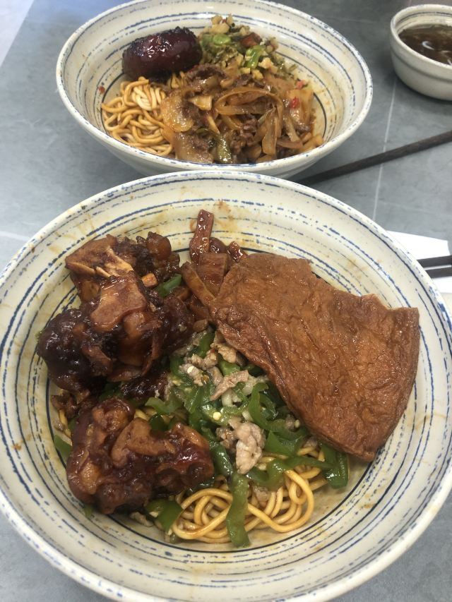 网红餐厅,年初八初九倒是还开业的,生意也非常好,里边都坐满了。简简单单点了个干挑面,其他浇头就像自选快餐一样,都放在前台自选。加了青菜,笋干,丫头,狮子头,30出头。面条不是传统的湖州面条,介于粉和面条中间的那种感觉。最惊艳的应该是狮子头。吃完面条可以拿碗到前台续面。