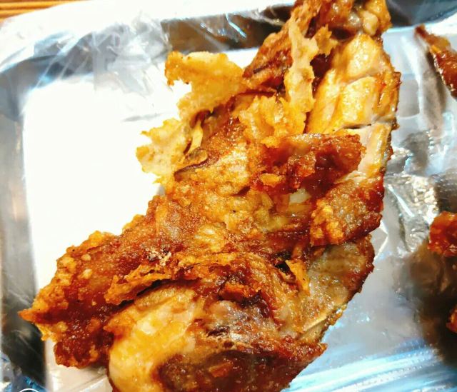 走走tingting的美食笔记 这家的炸物在西街是比较有名的,两个人点了两个鸡翅,-一个鸡骨架,两份绿豆石花膏。鸡骨架和鸡翅的味道是一样的,个人推荐鸡翅,鸡翅肉比较多而且好吃,咬下去肉汁都溅到手上,外皮香脆里面的肉嫩滑可口。鸡架就是鸡骨架,所以肉少,但吃起来更香。百合绿豆 普普通通,不过冰凉爽口,搭配这些上火的炸物倒也是不错。 就是店太小了,只有五张小桌子,所以几乎都要排队等,或是打包回去吃。