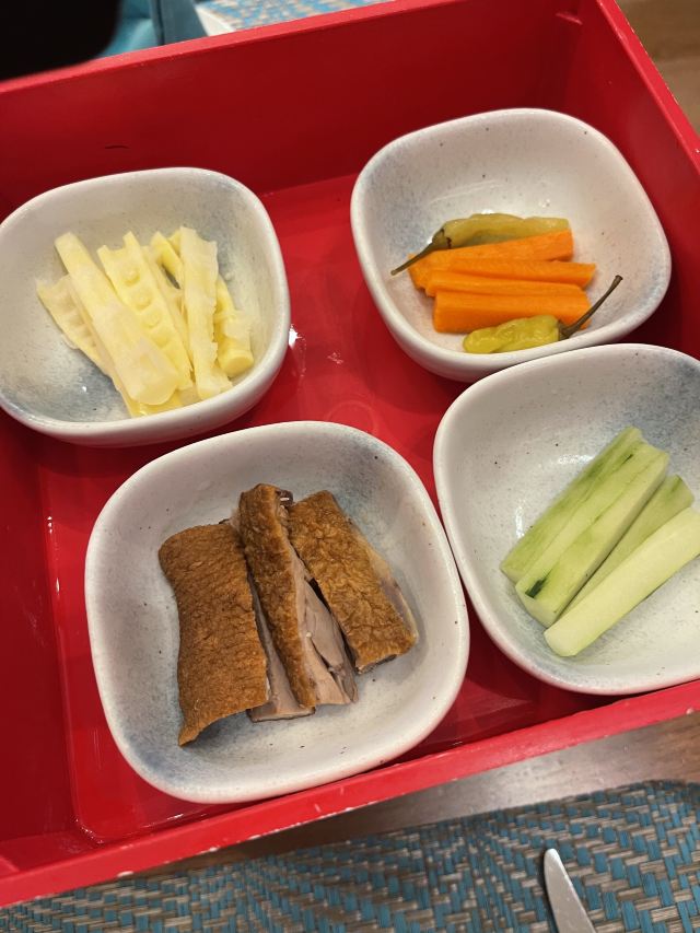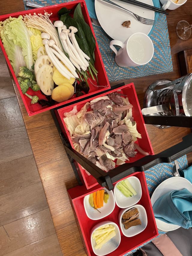 去峨眉山玩,住在艾美酒店,环境真的很好,峨眉山脚下的餐厅。在西餐厅吃了好几餐,西餐真的比中餐做得好多了。 嘉州火锅 先说一下这个火锅套餐,198,里面料很足,基本上什么都有了。就是火锅真的不给力啊[调皮][笑哭][笑哭][笑哭]坐下来20分钟才上火锅,那时候已经晚上差不多8:40了。然后,这两个小火锅,是怎样都烧不开,忍无可忍,小姐姐给我们换了双头的炉,才勉强烧开[捂脸]这个火锅在前一晚的自助餐中,也是这样折磨我们的。就是如果光吃这个火锅,我们全家会被饿si[笑哭][笑哭] 海鲜披萨 孩子点了意粉和炸鸡翅,却很好吃,跟外面的西餐厅出品差不多。建议来这家,单点都点西餐吧。 [服务铃]服务: 五星级酒店,服务肯定没得说。小哥哥小姐姐颜值都很高。但就是有种感觉,每个人都在忙,转来转去,却不知道在忙什么。酒店不像很新的酒店,但是服务人员却像新进来的团队。 整个酒店总体感觉不错[强]中餐需加强!效率需提高!