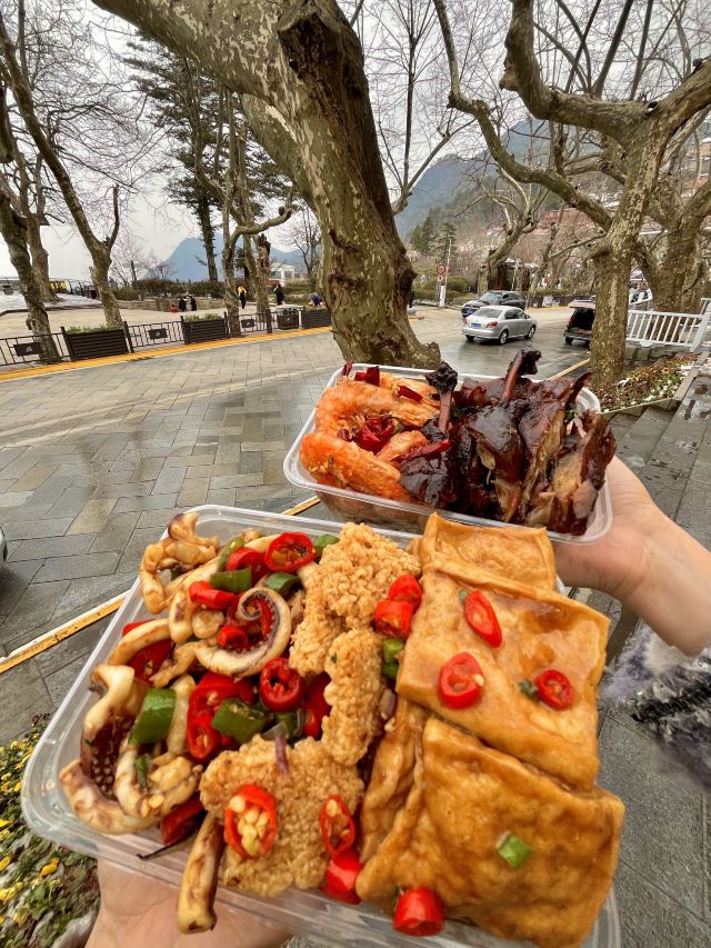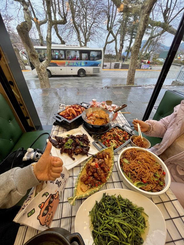 ✅云雾酱香鸭,庐山泉水老豆腐,庐山野菜肉丸汤,长寿菜,椒盐大虾,绝杀牛肉炒粉(菜都有锅气) 📍沈厨(街心公园对面,交通便利) 🌟窗景很好,吃饭就可以看到对面的庐山云雾☁️雪景,门口就有摆渡车站。