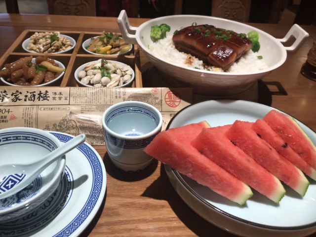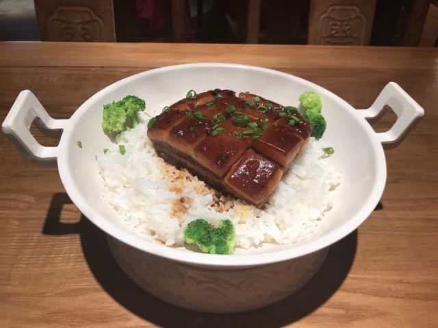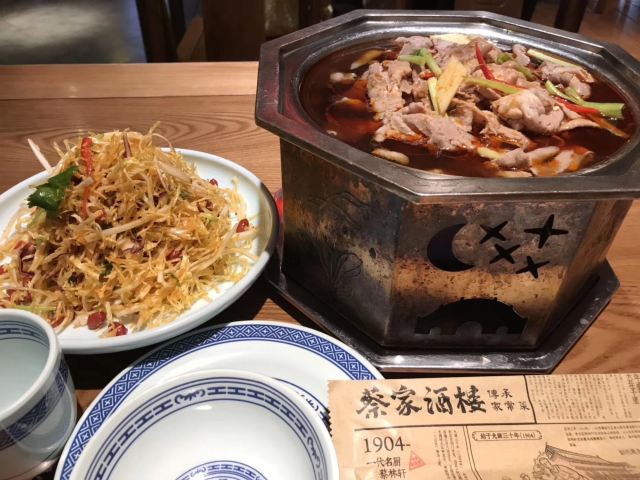 蔡家酒楼在浑源有两家店,是浑源首屈一指的地方特色餐饮,菜品味道纯正、食客络绎不绝。过油肉是必点的菜,满满的山西原味;红烧肉浇饭,肉厚不腻、米香原味;拌白菜丝,量足色艳、脆爽清口;小四样,赏心悦目、地方特色;红糖馒头,松软清香、回味无穷