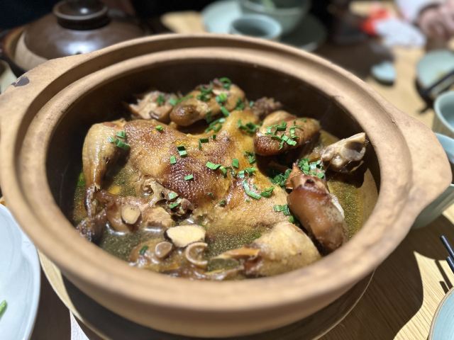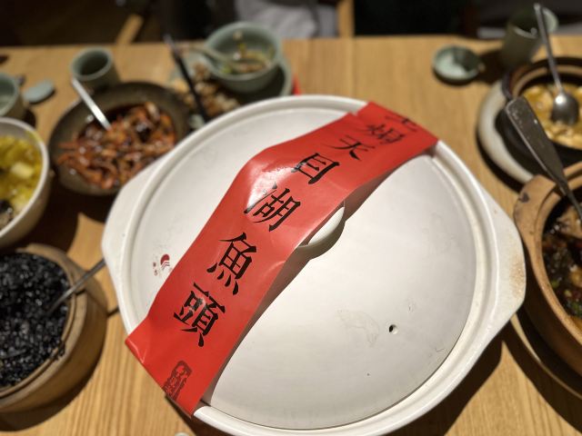 天目湖砂锅鱼头汤,沙姜焗南山走地鸡,南烛叶黑金乳鸽,陈皮文火小牛肉,龙井虾仁,稻香溧阳扎肝,白水鱼,竹筒乌米饭,竹林七贤养生汤,紫苏生焗天目湖鱼头(大)