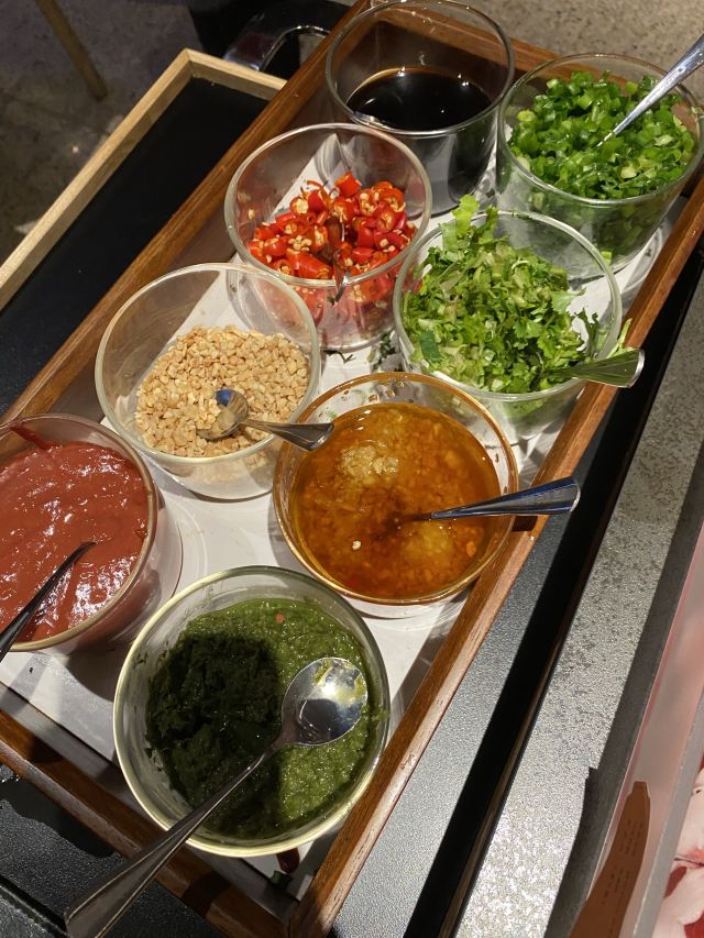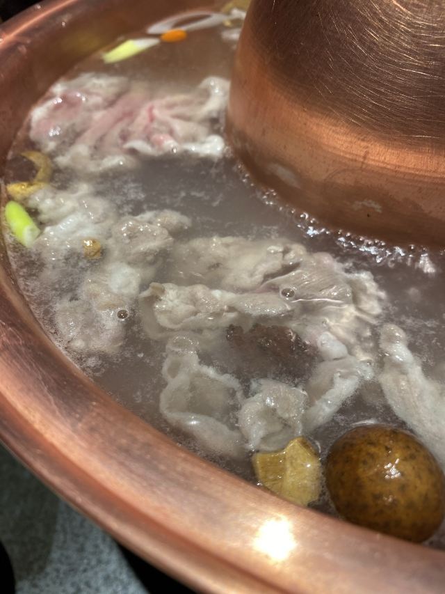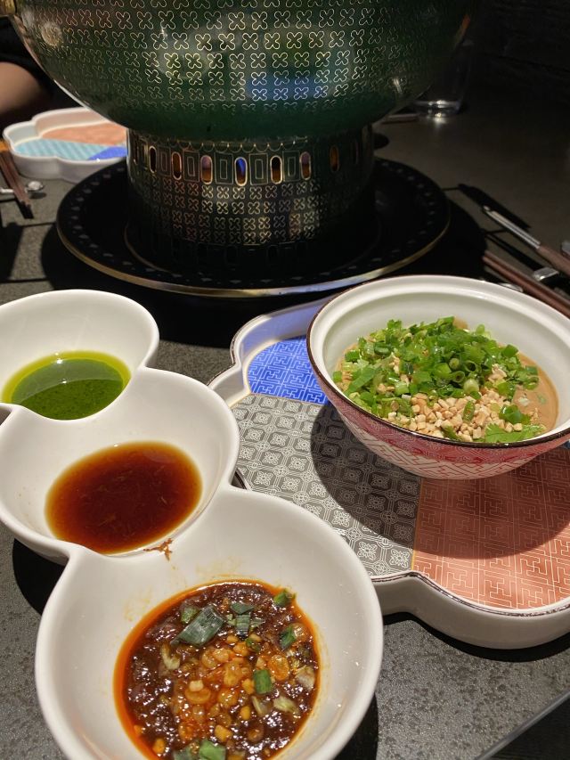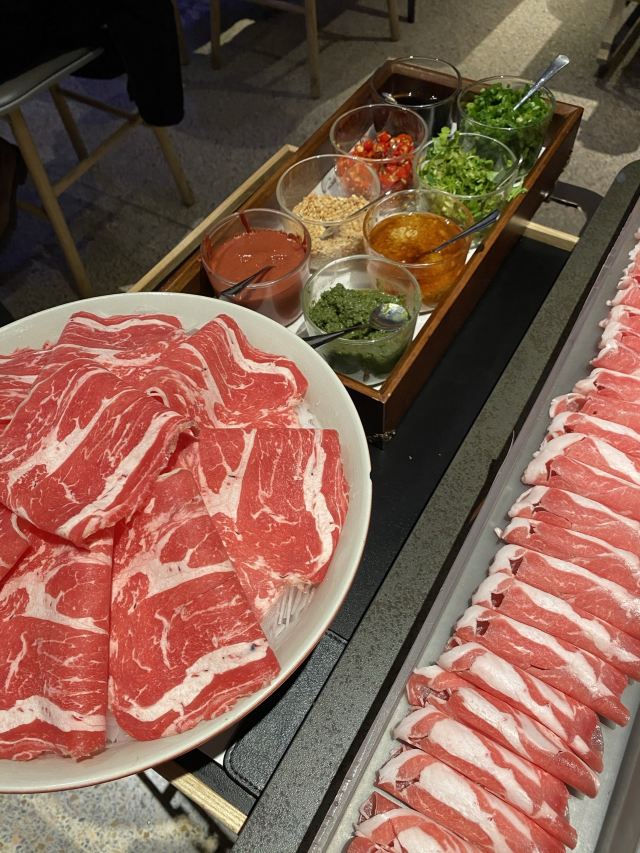 本来想着会不会是华而不实的餐厅🍴,结果吃过之后彻底改变了想法。 【口味】 「锡蒙草饲180天羔羊肉300g」肉片特别鲜嫩,蘸着沙葱姜吃是很特别的味道。 「沙葱小料」有三种小料,分别是蘸羊肉🐑、牛肉🐂和海鲜🦞吃的,非常讲究了。 「牛上脑」配专门的酱料吃起来吃出了寿喜烧的味道,十分惊喜了! 「经典大片脆毛肚」鲜毛肚没有了,换了脆毛肚,跟名字一样真心很脆很嫩。 【环境】 总之这真是一家不踩雷的店,店里7点和8点分别会有一波十分钟左右的京剧表演,同时还会有鸡尾酒🍹和切肉师傅表演,十分热闹了。适合朋友小聚、商务宴请,推荐大家来试试~