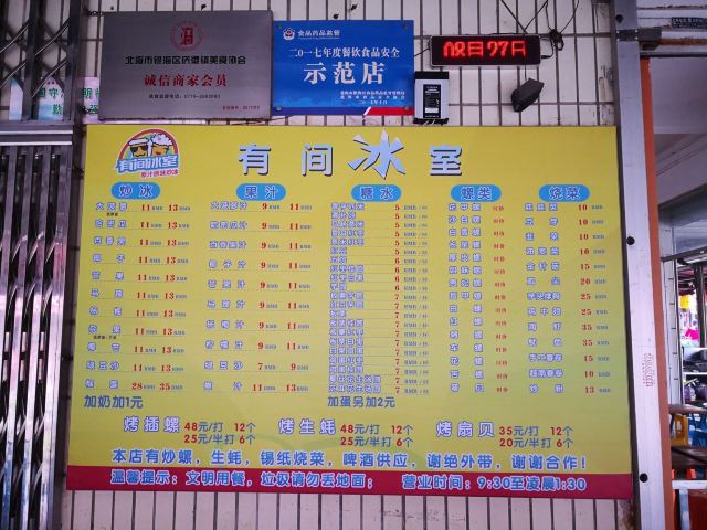🌸有间冰室的各类鲜果冰沙都是纯手工制作,招牌芒果炒冰,口感绵密,入口即化,+椰奶口感更好。 🍁有间冰室除了冰饮倍受欢迎外,这里的海鲜,海螺新鲜,平价且美味!通常三五好友,先去点些海鲜和海螺,再每人点一份炒冰,一边吃着海鲜,再品一口芒果绵冰,乃是人间幸事!