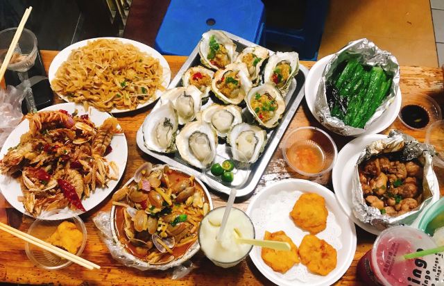 炒长尾螺,椒盐皮皮虾,烤生蚝,越南炒粉,菠萝蜜,椰芒炒冰,百香果,烤扇贝,糖水,炒螺,菠萝蜜炒冰,锡纸烤大白菜,芒果炒冰,百香果炒冰,椰子炒冰,榴莲炒冰,锡纸烤豆芽