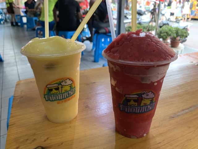 老字号的炒冰冷饮店,排队的人超级多。各类原果冰沙都是纯手工制作,招牌菠萝蜜冰,口感绵密,入口即化。有间冰室和有间螺摊在一起,喝啤酒吃烤螺,再来杯冰沙,实在是太爽了。