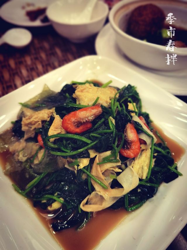 小花猫大笨熊【位置】 导航过去,位置准确,门口有几个免费停车位,停不下的店家会给指停车场。 【环境】 一楼大厅,二楼包间,环境还不错。 【服务】 店家挺热情的,会给介绍推荐菜品。 【食物】 老汁鸡,半只24元,肉略柴,口味也不是我喜欢的。 陈好婆狮子头,12元一只,口感味道双佳,蛮好吃的。 老肝大肠,78元,第一次吃这种组合,猪肝有咬劲,大肠处理得很干净,配菜是茨菇,粉糯入味,好吃的一道红烧菜。 季市春拌,28元,清爽的炒菜,就是粉皮的品质一般了点。 豌豆苗馓子,18元,还不错。 【评价】 季市是靖江的一个小镇,岀产很多特色美食。 来靖江好多次,总是路过这家店,这次总算有机会去拔草了,菜是家常菜风格,口味还不错。