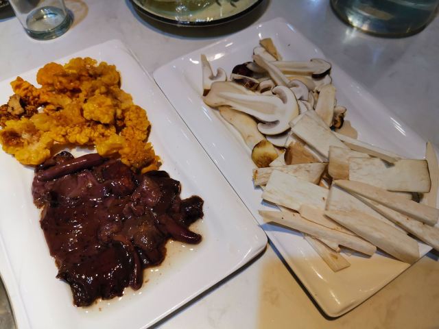 菌菇火锅鲜美… 鲜的掉眉毛,我没有点套餐… 很多菇不认识… 单点吃完有点小贵,但吃了自己认识的菇,觉得安全…