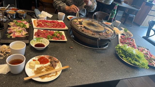 韩式烤肉,黑椒牛排,烤酸菜,烤红薯,烤肠,烤牛胸口肉,都很好吃。