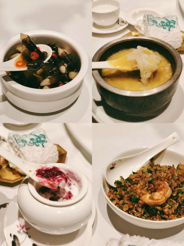 避风塘帝王蟹,潮式凤吞甲鱼,太雕帝王蟹,白胡椒土猪肚包花胶,金不换炒薄壳,梅菜干烧仔排,蒜蓉粉丝蒸波士顿龙虾,黑椒焗波士顿龙虾,藤椒帝王蟹,佛跳墙,大漠沙葱啫鲜羊肉,潮式午笋鱼饭,藤椒煮龙虾,文火澳洲牛肉