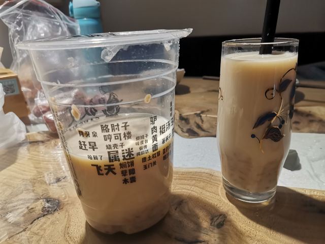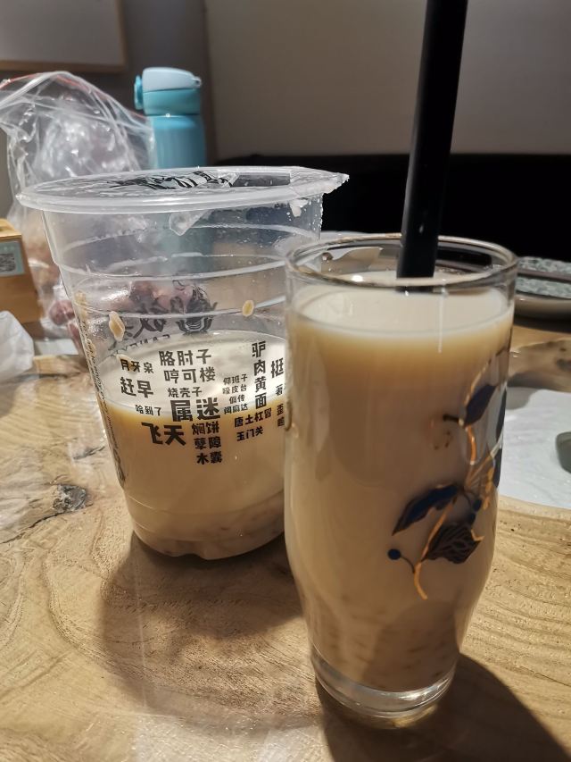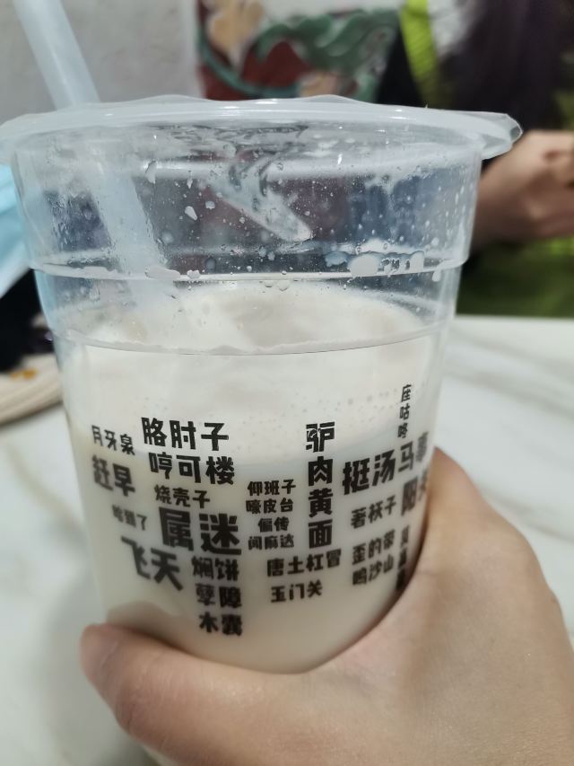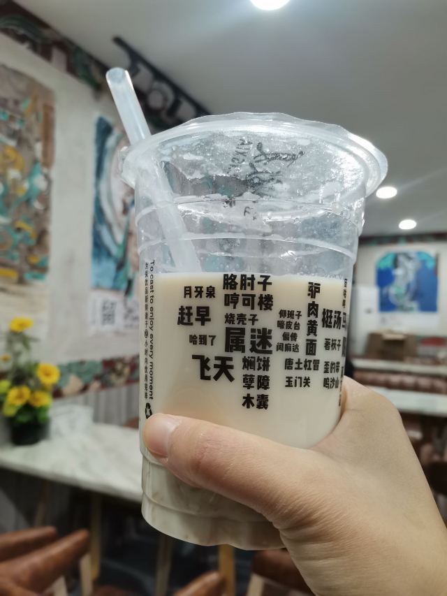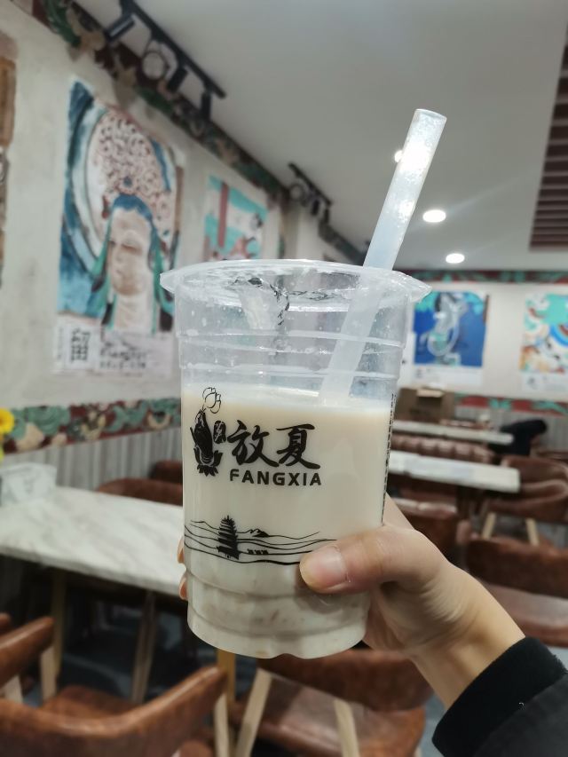 我又来了…… 【位置】夜市一条街最南,南牌坊。 【环境】装修得很敦煌。不过大冬天的,基本没开暖气,裹着和室外一样多的衣服,晚上坐了会,也是越来越冷。 【服务】只有一位小哥哥留守了。店里没有洗手间,要走到莫高小镇去。 没有勺子,所以分食一杯很麻烦,甜胚子倒不出来。 【口味】经典的甜胚子奶茶,一升,怎么都值这个价,更何况还用了券。