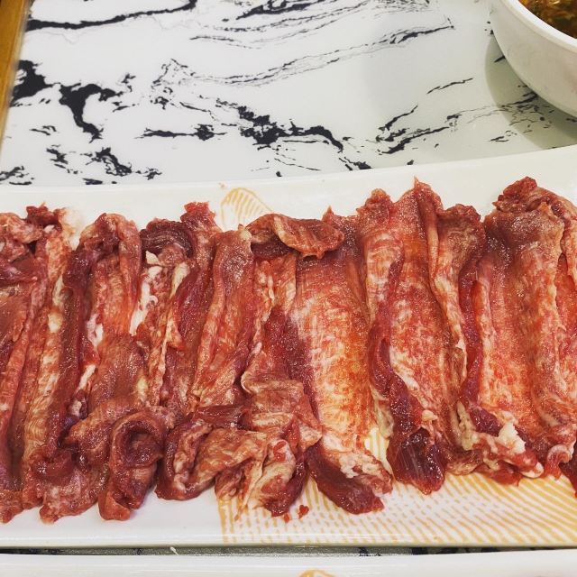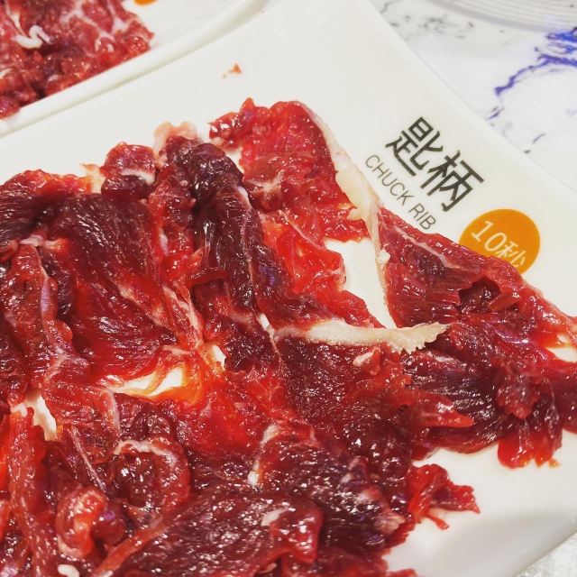 这家店在台山生意不错,肉很新鲜。各种牛肉分类很细致,口味各有不同「鲜烤霸气牛肉串」非常好吃,牛肉很嫩,很香「嫩肉」基本上没有肥的,都是瘦肉「五花腱」肥瘦相间,很好吃,而且连着筋「匙柄」牛腿和牛肚子那部份的肉「匙仁」应该是牛脖子肉「牛骨原味锅」最适合吃牛肉的锅底 [薄荷]环境: 不错,商场4楼 [服务铃]服务: 很好