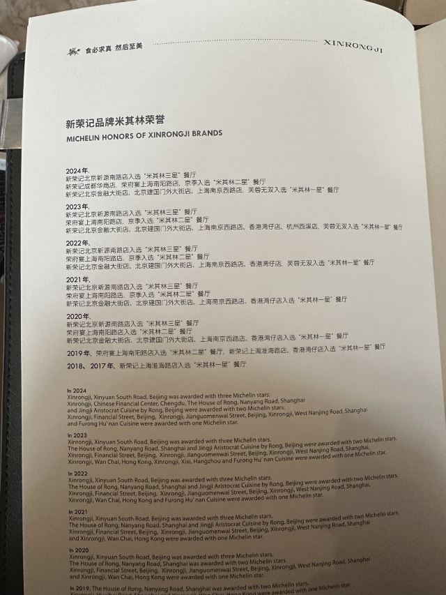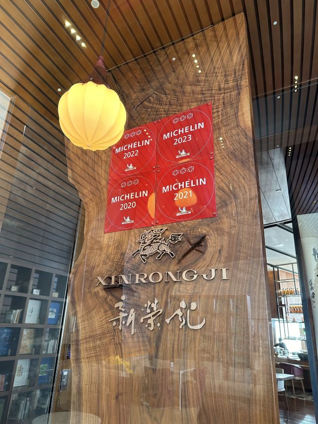 XINRONGJI前菜红酒鹅肝中规中矩 乳鸽还可以 鲍鱼红烧肉可以说是个人觉得最不错的一道菜了 8号桌后面有块儿砖略为有点发黑 拍照起来有一点点煞风景 可能是个人原因 喝了好几杯水 吃几口菜就得喝点水 感觉稍微有点口味重 总体来说还不错 【服务】真的很好 很到位提前说了生日 送了生日面和红丝绒蛋糕!还有蜡烛!赞爆了