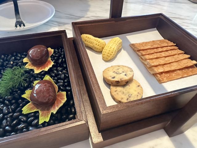 黄金脆带鱼,沙蒜烧豆面,和牛挞,脆皮妙龄鸽,农家盐卤豆腐煲,蜜汁红薯,鲍鱼红烧肉,杏仁饼,花胶黄鱼羹,酥皮叉烧包