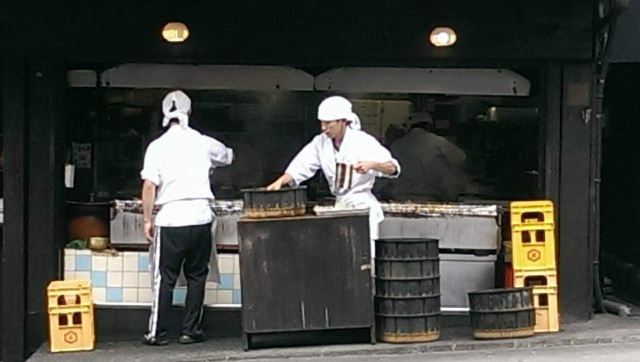 离成田公园近,门口有三位男士现杀鳗鱼,店里生意很好,楼上楼下几乎坐满,上楼脱鞋,把鞋装进袋子,自己拎上楼。鳗鱼饭一盒下肚刚刚好,胃口大的人士可能需要来两盒…