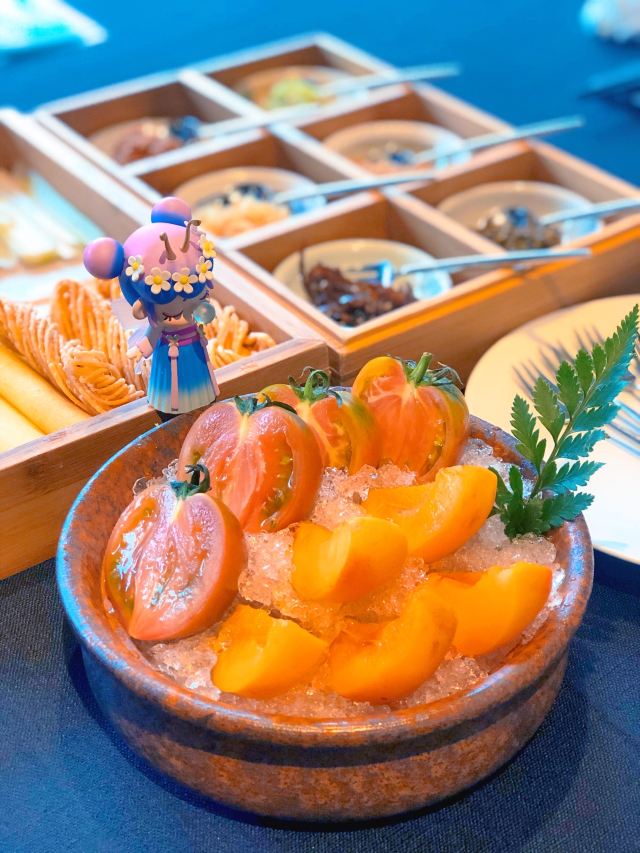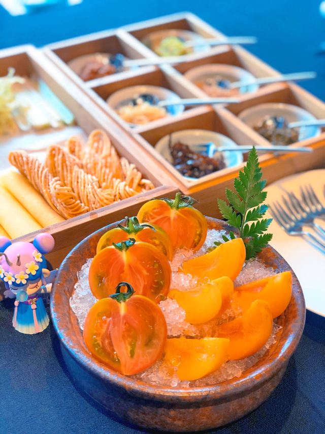 旅游度假服务超棒,尽管当天客人比较多,店员们都很忙碌,但服务丝毫不怠慢。尤其是店长,也太兢兢业业了! 精美果盘 果盘里是红宝石西红柿和崂山红杏,妈妈说吃出了小时候的感觉,那种纯天然无污染无农药的小美好。