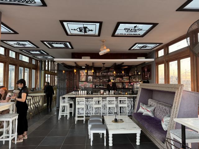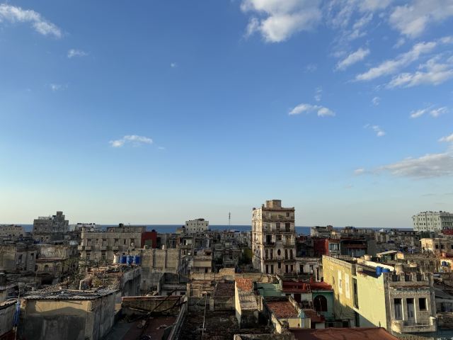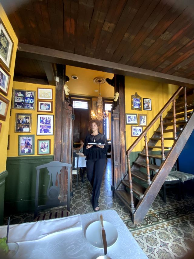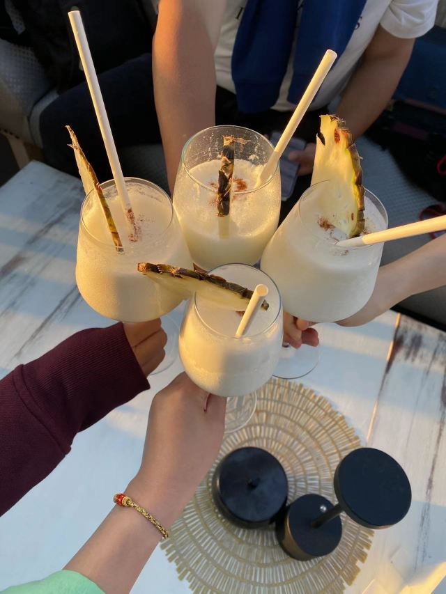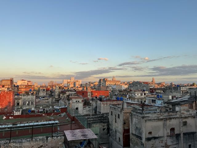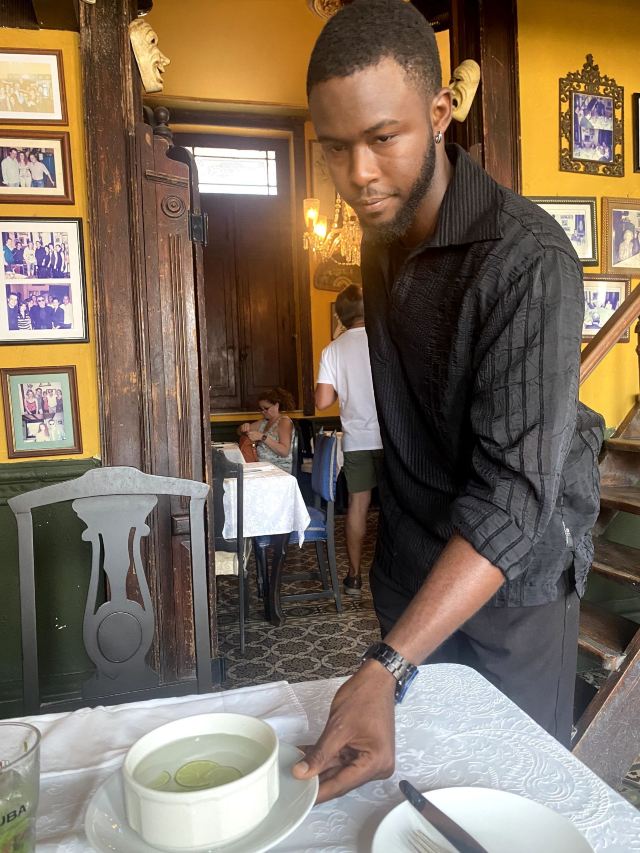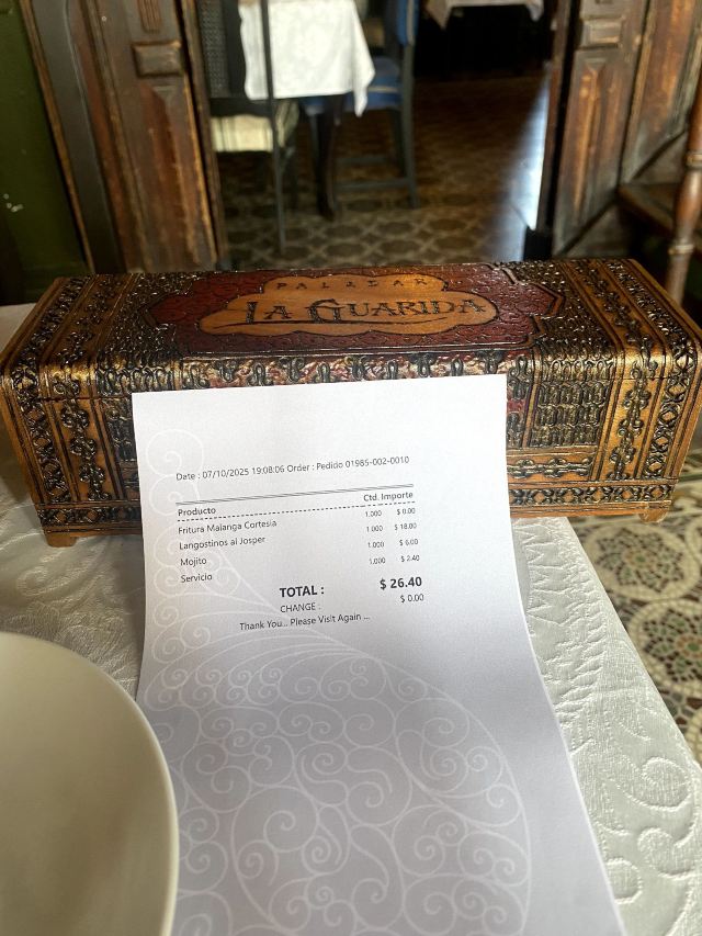 门面破破烂烂不起眼的一家酒吧兼餐厅,竟然是因柏林电影节著名参赛同志片《草莓和巧克力》取景地而出名的网红打卡地,La Guarida,差点错过。餐厅是需要穿过一楼二楼如居民公寓的所在,正门开在三楼,四楼还有露台酒吧,在露台上可以品尝优质的鸡尾酒和软饮,能够清晰地眺望哈瓦那老城的古早风光。三楼有室内的和露台的餐厅座位,夕阳西下的时候,端坐露台,品尝拉美佳肴名酿,惬意享受尊贵的服务,煞是美哉。店家生意非常火,餐厅客人络绎不绝地到达,酒吧还市场举办音乐聚会,热闹。