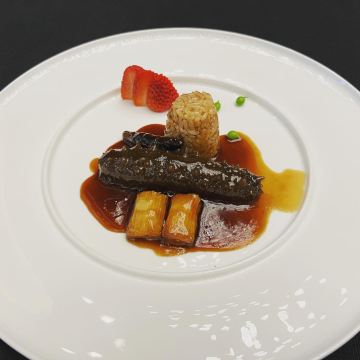 「葱烧一头海参配乌米菌」海参不错,软而有韧劲,咸淡口也非常合适,乌米菌很细,刚吃有点渣,后来很香「渤海湾大虾烧白菜」很好吃,白菜有了虾的甜味和鲜味「鲁采黄鱼饭」整体汤汁偏甜,口感没那么好,黄鱼还不错「海参包子」很清淡「鲁采大包子」酱肉的口感,咸鲜,大包子一分为二「餐前水果」不错,有西红柿,很香,金桔很甜,哈密瓜很新鲜 [薄荷]环境: 很好 [服务铃]服务: 不错