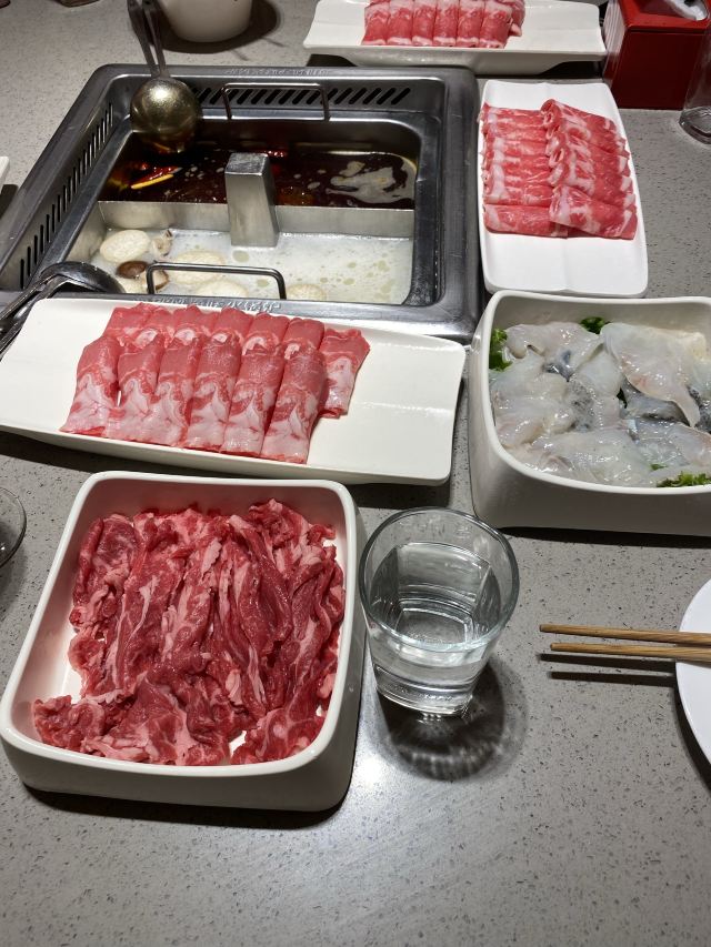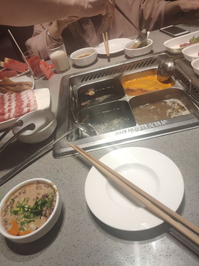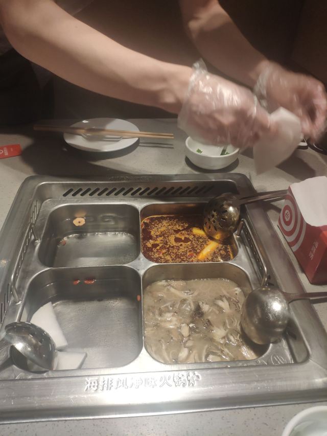 槛外内人四格的锅底很不错,菌汤,猪肚鸡,番茄,辣锅,又能喝汤,又能涮肉,服务也很到位,带孩子去直接就带上楼了,还送了好多玩具,娃超级开心