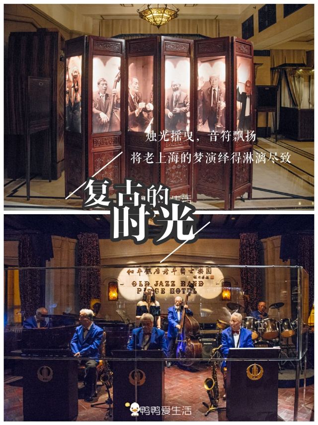 鸭鸭爱生活❤每当夜幕降临,在上海滩C位的和平饭店,传来熟悉的旋律,复古二三十年代的老上海风情,都在那一首首耳熟能详的老歌中缓缓流淌出来。当你走进这个爵士酒吧,当你看到台上表演的那群人,那一刻的震撼真的无法形容。他们白发苍苍但穿着精神奕奕的蓝色西装,他们神情专注,干瘦的手指划过怀抱的乐器,他们是和平饭店的老年爵士乐队。 🎶和平饭店老年爵士乐队成立于1980年,是上海最负盛名的爵士乐队之一,亦是国内唯一的一支老年爵士乐队。平均年龄达到了80岁,40年来风雨无阻,每晚在和平饭店一楼的爵士吧带来经典爵士乐。你完全看不到80高龄的耄耋老人颓靡,对音乐的热爱对生活的享受在他们身上展现出来,这样的状态真的让我们这些动不动喊累的年轻人感到自愧不如。 💃随着乐曲的响起,有不少人还情不自禁的跳起舞来,一曲中三或者伦巴让这不大的爵士吧内显得更有风情了,仿佛回到了三十年代老洋房里举办的舞会。听歌的同时也可以近距离地坐在吧台,看帅气的调酒师调酒。 🥂进入爵士吧每人的最低消费是一杯酒水,人均大概100左右,其实还是很划算的。在老上海的爵士乐风情中品一杯浪漫鸡尾酒,也是别有一番体验。 👨🦳比起小鲜肉们,这些“老腊肉”反而更令人回味。知道我们来自厦门,现任团长过来跟我们聊天,健言谈举止感受到了他们的情怀,喜欢新事物也乐于分享他们的喜悦。 🤗“人们都说,看到我们,宛如看到旧上海的繁华。其实不是,我们见证的,是一个全新的上海。” 👍如果你来了上海,如果你晚上路过外滩,即使没有入住和平饭店,也强烈建议你来爵士酒吧,听一次老年爵士乐队的现场演奏。伴随着经典的爵士乐,品一杯沙逊鸡尾酒,让人仿佛回到了上世纪的“黄金年代”。烛光摇曳,音符飘扬,将老上海的梦演绎到淋漓尽致。 💡旅游攻略信息: 和平饭店爵士吧 📍地址:上海和平饭店一层大堂 ⏱️营业时间:每晚18:00 – 24:00;老年爵士乐队演出 19:30 – 23:00