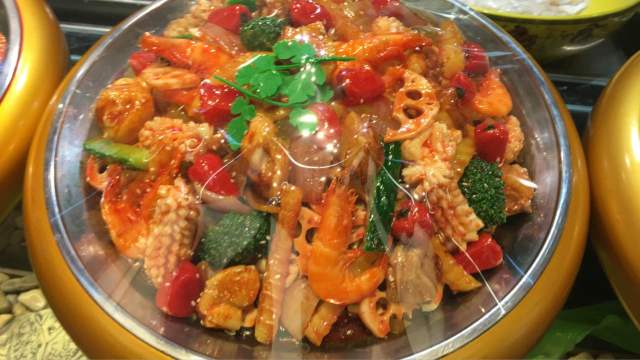 海鲜锅,全家福,干锅排骨虾,干锅牛肉一锅香,干锅鸡翅虾,干锅牛肉虾(大份),土豆条,排骨鸡,酸菜鱼,麻辣香锅,水煮鱼,毛血旺