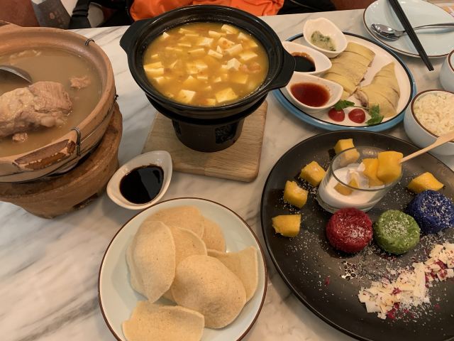 炭烧猪颈肉,香菇西兰花,新加坡四大天王,文东海南鸡,香芒沙律,榴莲泡芙,青柠檬酸汤海鲈鱼,咖喱皇炒大虾,餐前虾片,老潮州肉骨茶,爆浆榴莲泡芙,冬阴功汤,菠萝海鲜饭,狮城三杯鸡,新加坡叻沙檬粉,牛油果彩虹沙拉,马来拉茶,鹅掌粉丝煲,青柠鲈鱼,黑白胡椒蟹