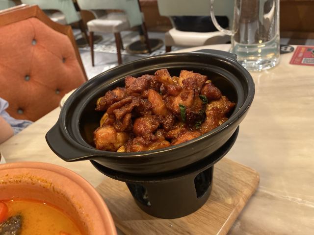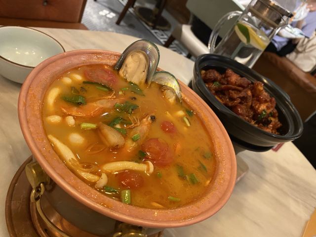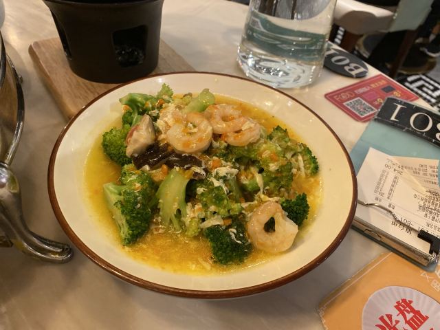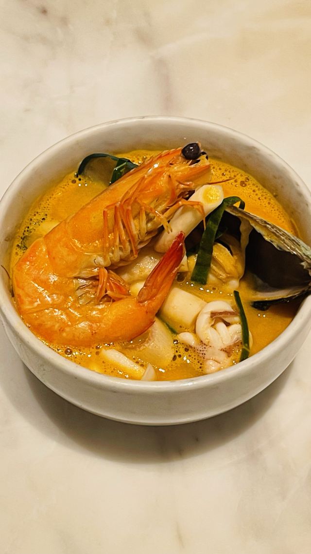 星怡会对我来说有特殊意义,所以一般我都不会给低分,他家做的实在比别家差些,勉强给四分吧。 [薄荷]环境: 装修风格很热烈,不如合生汇店清爽,多少是觉得有点“热”,影响食欲。 咖喱皇炒大虾 虾不够鲜,靠咖喱遮过去,但是肉质发紧靠调料是没用的。 老潮州肉骨茶 排骨同样是肉紧,这貌似是腔骨肉,反正口感不好。 菠萝海鲜饭 如果这个炒饭再炒不好,这顿饭我就吃不饱了,还好,有一个能吃的。 青柠檬酸汤海鲈鱼 始终对这道菜不死心,点了还是失望[难过] [服务铃]服务: 服务态度没问题,迎来送往都热情❤️🔥