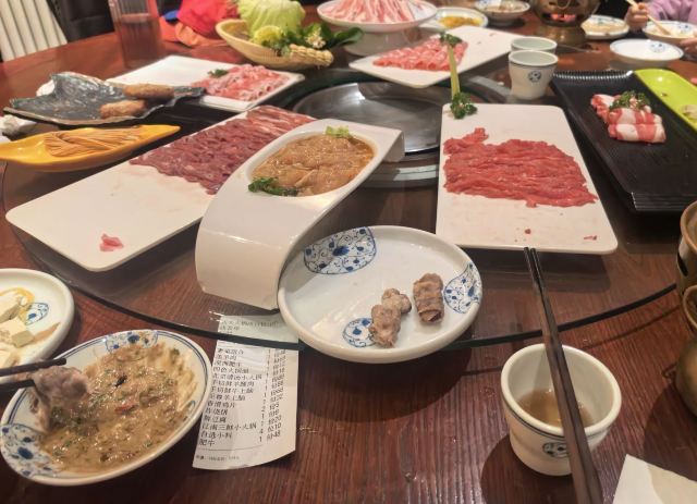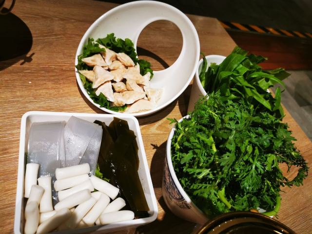再出发OnTheWay疫情期间古北水镇对外开放的餐厅貌似就三家,烧肉馆,清真餐厅,和这家火锅店。本来想着景区里的餐厅不太报什么希望(景区里普遍价格贵口味一般甚至难吃反正来一次下次就不来了,不指望什么回头客)菜单拿来一看,清汤锅才20,牛肉一盘子小贵点58,不过在景区这价格就算可以了,果断决定再这家吃了。上菜特快,小料这边是自取的,可以无限量的享受芝麻酱的香滑饿口感啦。景区这边白天暴晒,晚上该真有点冷了,吃点涮锅身体暖暖的也挺舒服的,店边上是水镇的电瓶车站,这里步行到日月广场也就两三分钟,想去温泉泡脚到镖局那边,或者晚上看喷泉步行最多五分钟,去哪里都方便。