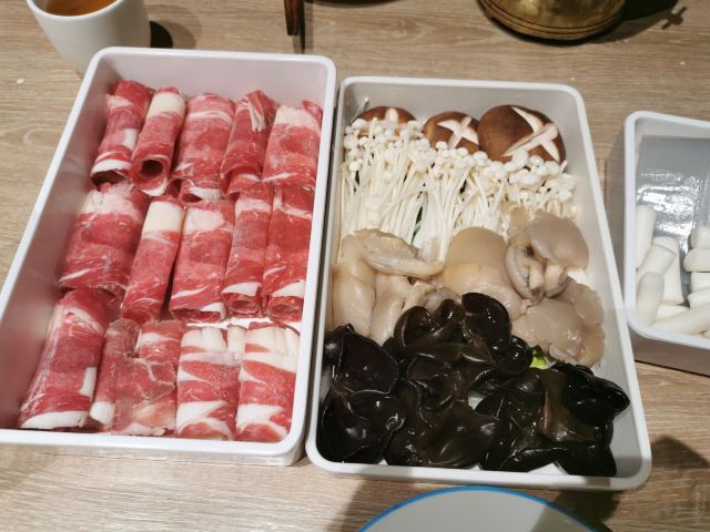 Gu Guan Hot Pot City口味:菜品食材不好,羊肉卷煮完都是碎的,自助调料弄个蒜泥香油料,假香油一点味道都没有。 环境:环境一般,地上有点黏鞋 服务:服务人员少,没什么服务
