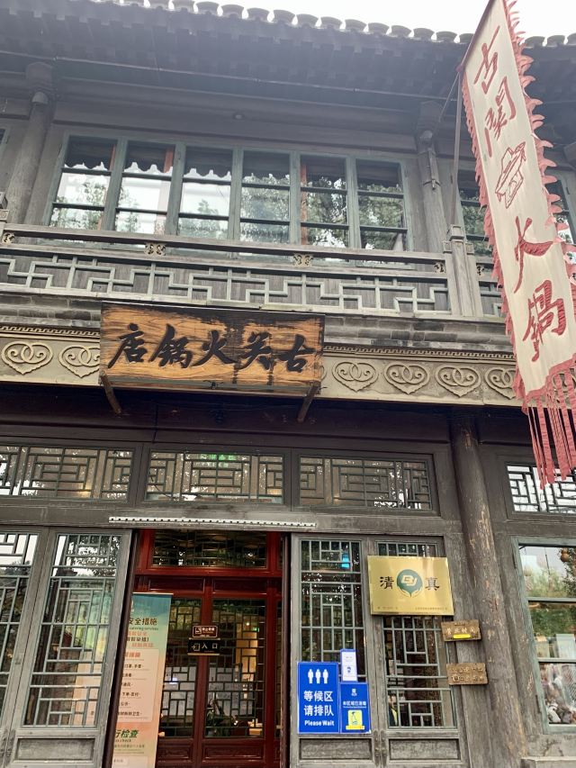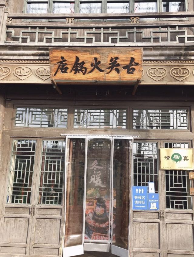 古北水镇景区内的火锅餐馆,店门古韵十足,装修精致。大口的铜锅加上不同的汤底选择,涮上大片的牛羊肉,搭配店内的特色调料,让人食指大动。