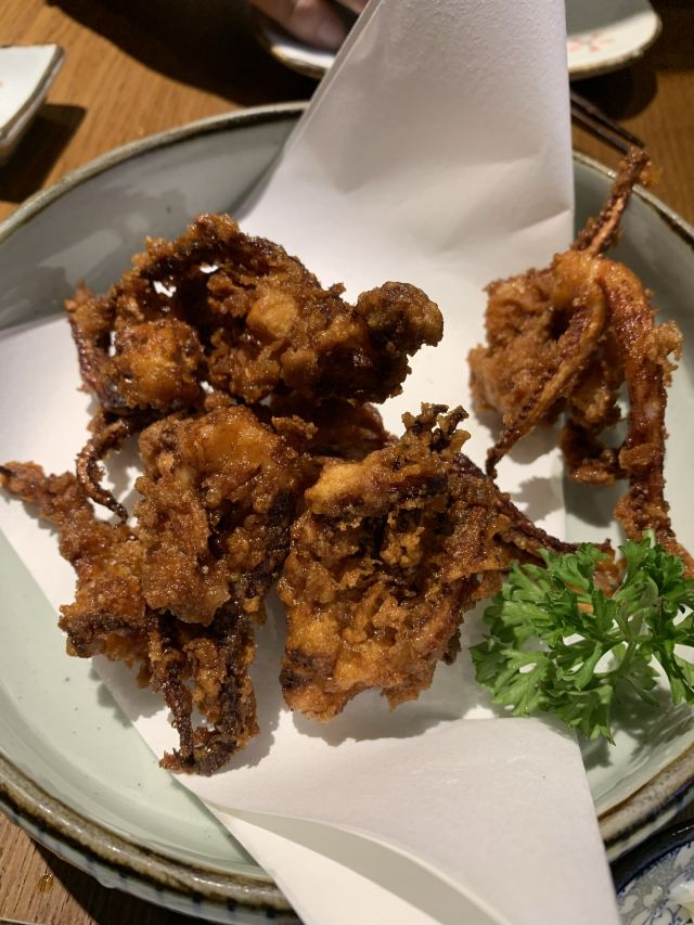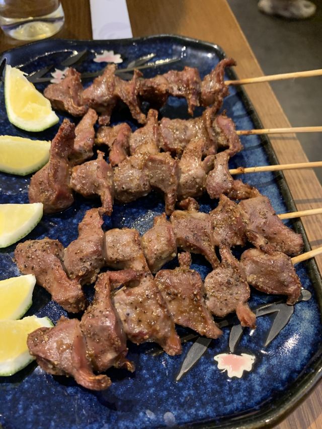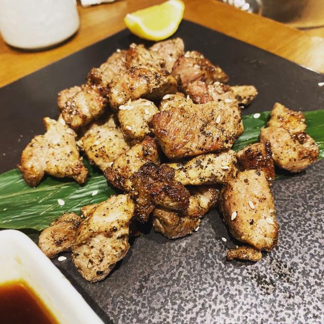 「刺身五点拼盘」种类比较多,三文鱼、北极贝,甜虾,还有两种鱼,比较新鲜「一饱口福烧鸟拼盘」有五种口味,鸡心、鸡肝,鸡皮,鸡肉,鸡脆骨,每个味道都是还可以「盐烤黑猪梅花肉」肉比较瘦,味道一般,酱料不错,个人觉得不一定点「柚子醋炸鸡皮」味道很好吃,比较脆,味道也很好「鳗鱼蒲烤」味道很好,鳗鱼很嫩,很入味「中华海藻」很清爽「松竹梅清酒」不错 [薄荷]环境: 很好,两层楼 [服务铃]服务: 也不错