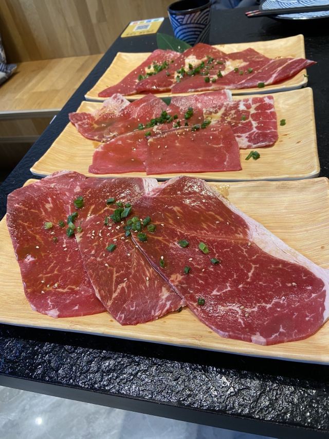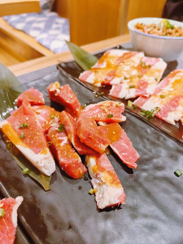 🥩芭比Q🥩晨阳北新桥日式烤肉🥩 🥩在天愿作比翼鸟,在地愿意吃烧烤🥩 澳洲上脑:🥩蜜汁腌制的上脑烤制七分熟,不放烤肉料也おいしい。🥩 雪花牛肉:🥩烤肉滋滋作响,肥瘦相间,肉嫩多汁,垂涎欲滴。🥩😍 霜降牛肉:🥩口感柔韧有嚼劲。🥩 环境:在簋街附近,周围停车不是很方便。