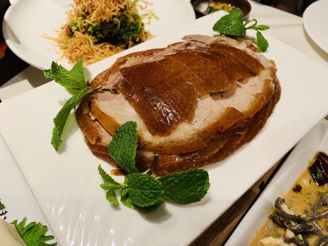 虽是新兴的烤鸭店,环境、味道丝毫不逊色于老字号的烤鸭店。招牌的特选酥香嫩烤鸭采用古法烤制,入口即化、脆嫩喷香。
