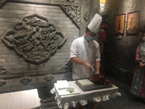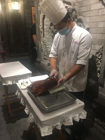 生意非常好,每天晚上都要排队取号。店里的装修风格采用民国装修,一进门就有一辆黄包车供顾客拍照,楼上还有皇帝的服饰可以让顾客免费拍照。北平楼楼的烤鸭做的很地道,价格适中。其他的菜品也做得比较出色。