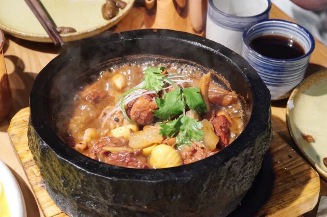 Dian mao·xiao yuan er shuan rou(xuan wu men dian)点卯小院位于北京西城区宣武门(新华社正门西侧)。餐厅以老北京风味为特色,一口酥烤鸭是其招牌菜,也有一些创新菜和融合菜。味道不错。