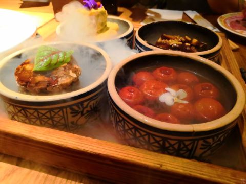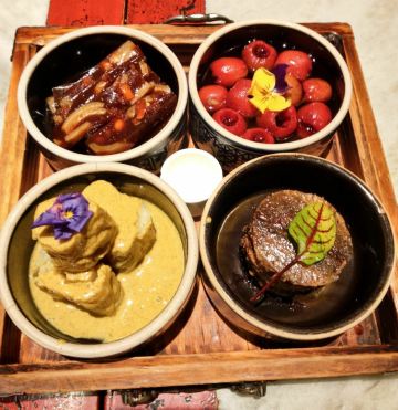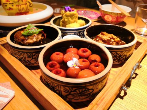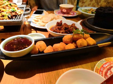 炸灌肠,乾隆白菜,局气酥皮虾,局气豆腐,兔爷土豆泥,杏仁豆腐,麻豆腐,松仁炸酱面,北京烤鸭,爆肚,干炸丸子,京酱肉丝,小吊梨汤,局气炒饭,芥末墩,老北京奶酪,灌肠