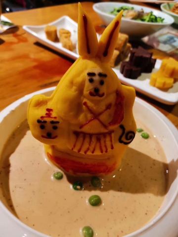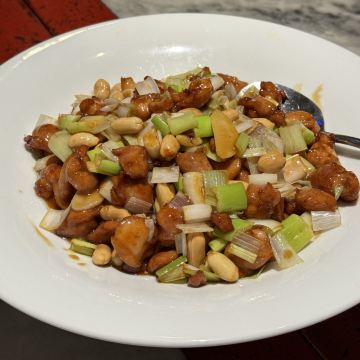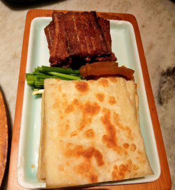 烤鸭都是现烤现片的,鸭皮入口即化,鸭肉嫩嫩的,搭配着蘸料特别香。 宫保鸡丁要的免辣的,鸡腿肉嫩滑可口,花生米酥酥脆脆,下饭神菜。 服务员特别热情,服务周到,还送了酸奶和兔子布丁。 店里有儿童餐具,可可爱爱的。 门口有免费停车位,大大的赞。