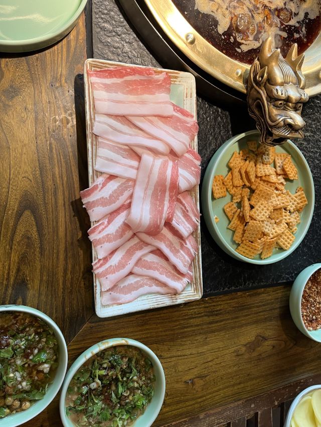 XIAO MU DENG HUAI JIU HUO GUO久违的味道!重庆火锅🍲 趁着十一长假的最后一天,就来试试看。天气刚刚渐冷,吃火锅真是时候! 位置在超级蜂巢园区的大门口,招牌醒目,开导航很方便,园区里停车位充足! 【环境】中式装修、张灯结彩的喜庆氛围,有点重庆的意思。 【服务】 前台服务热情,点菜上菜都很快! 【口味】 「重庆火锅」标准鸳鸯锅,涮肉涮菜各得其所! 「鲜鸭血」原料新鲜,口感细嫩,不错[OK] 「安井火锅撒尿牛肉丸」非常Q弹,内有汁水,味道好; 「五花肉」涮五花肉还是第一次吃,确实印象深刻。 「重庆老肉片」招牌菜确实有特色,有质感,赞一个[强] 一阵食欲大开,自己又点了店里知名的「洒家招牌嫩牛肉」经过炮制后的鲜嫩,味道不错。 「鲜毛肚」最是重庆的味道,没有之一!极为爽脆,令人欲罢不能,结果一扫而光!哈哈😄 「蔬菜拼盘」「土豆」「火锅面」几乎都快吃不下了,土豆口感很面,不错👌 一次非常愉快的假期,一次重庆火锅的洗礼,期待下次有机会,还要来光顾!