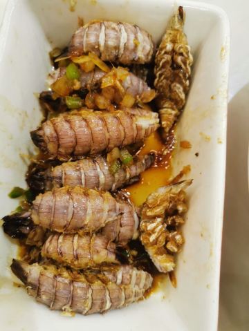 海盐牛肉粒,Y先生的皮皮虾(大份),龙井豆腐,私房打卤面,脆筒龙虾卷,海盐牛肉,鲍鱼+土豆,茶香虾,金蕊红汤鱼,奶油烤杂拌