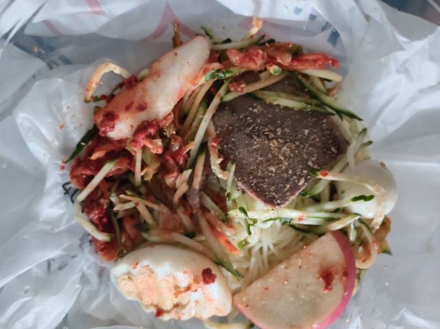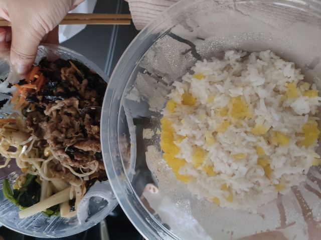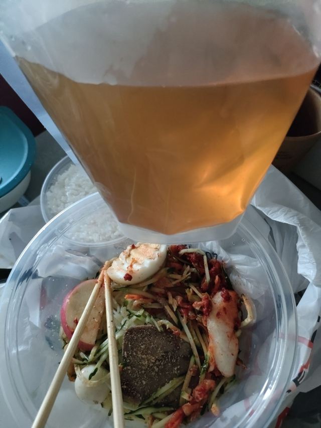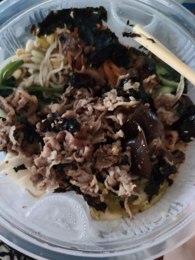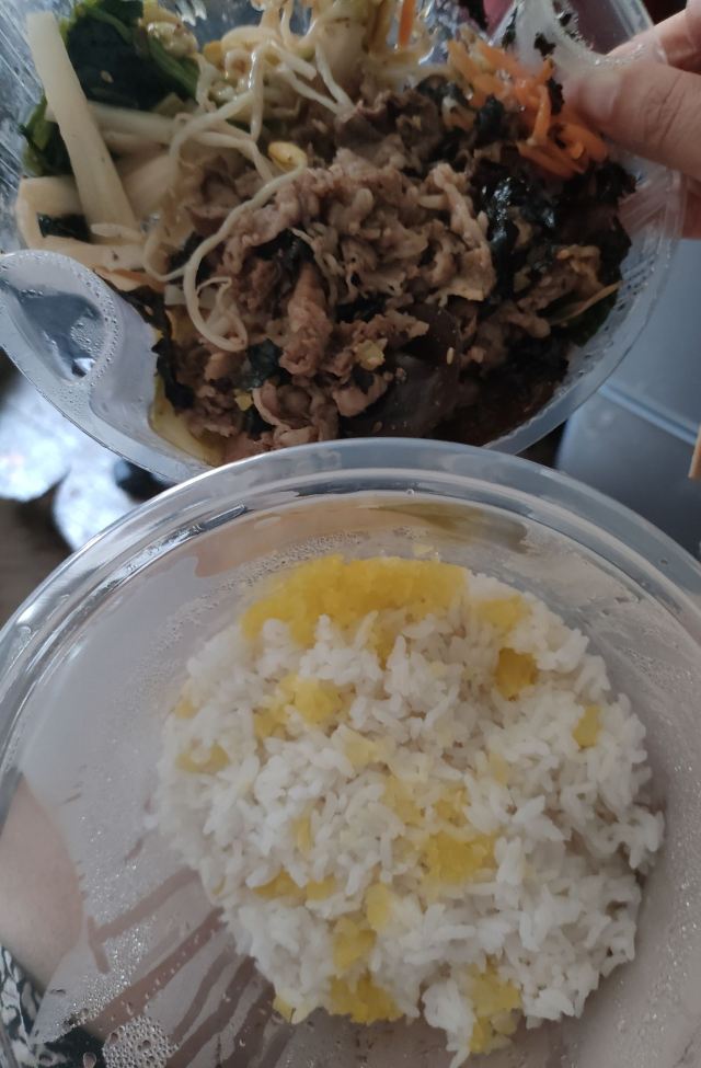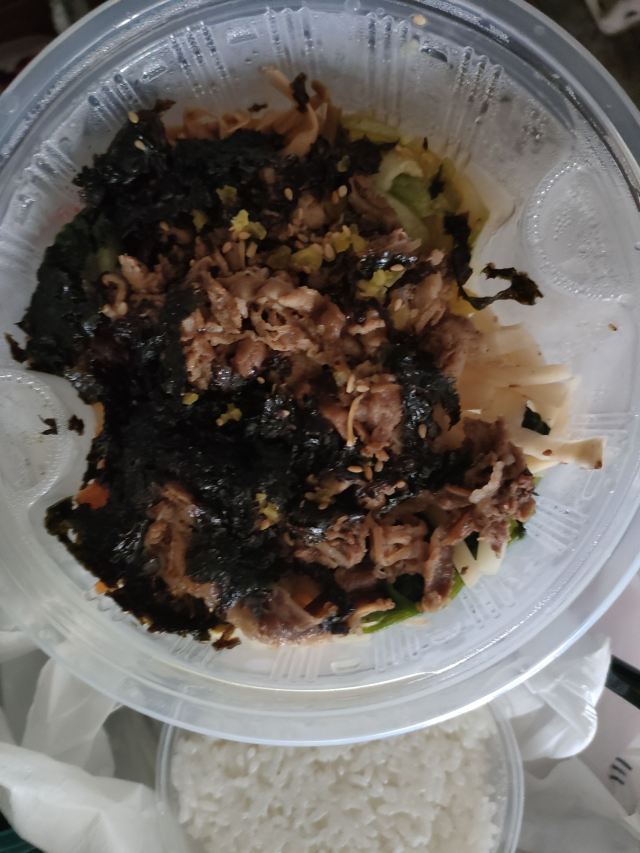 【口味】送的米汁特别好喝。有甜酒槽的味道。它家拌饭也还好,卡路里特别高,拌饭加了油。韩式辣酱和小料配菜挺不错的。小料吃了好几顿。